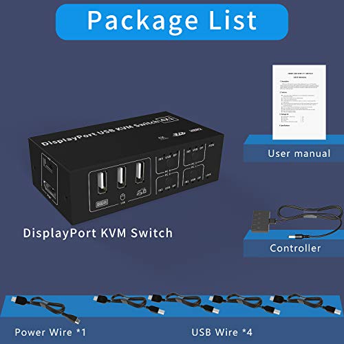 - 【Breite Kompatibilität】- Kompatibel mit allen Laptops mit DP-Anschluss und anderen Geräten wie PS4, Xbox One usw. Funktioniert mit Windows, MacOS, Linux, Unix usw. Der 4 Port DP KVM Switch kann im Bildungsbereich häufig verwendet werden. Besprechungstraining, Videoüberwachung & Sicherheits- und Schutzsystem usw.