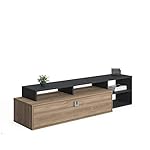 Dmora Verstellbarer Wohnzimmer-TV-Ständer, 160 x 40 x 38 cm, Farbe Eiche und Anthrazit