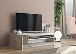 Dmora Wohnzimmer-TV-Ständer, Made in Italy, 2-türiger TV-Ständer, Wohnzimmer-TV-Ständer, 150x40h37 cm, Zementfarbe, mit blauem LED-Licht