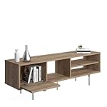 - Wohnzimmer-TV-Ständer mit essentiellen Linien mit einer Klapptür und drei offenen Fächern, ganz in Eichenfarbe