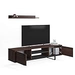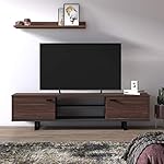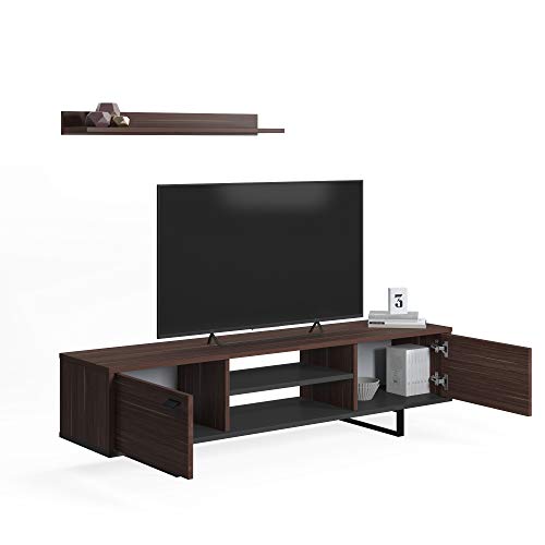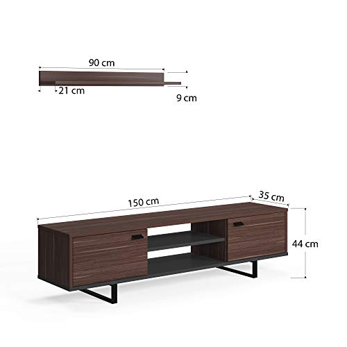 Dmora Wohnzimmer TV-Ständer mit zwei Türen und zwei Regalen, 150 x 35 x 44 cm, Nussbaum und Anthrazitfarbe