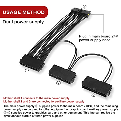 - ➤Dual PSU Netzteil 24-Pin-Adapterkabel, Ermöglicht Ihnen, ein zusätzliches Netzteil an Ihr ATX-Motherboard anzuschließen.