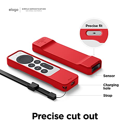 elago R1 Hülle kompatibel mit Apple TV 4K Siri Remote (2021) - Magnet Technologie, Schlüsselband inklusive, großartiger Grip, Starke Stoßdämpfung, Fallschutz, voller Zugriff auf alle Funktionen (Rot)