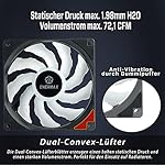 - Die Dual-Convex Lüfterblätter sind das Ergebnis einer feinmechanischen Berechnung der Form und der Winkel. Die Lüfterblätter konzentrieren den Luftstrom und erreichen so einen starken statischen Druck. Der Rahmen ist mit Gummipuffern ausgestattet, um Vibrationen und Geräusche zu reduzieren.