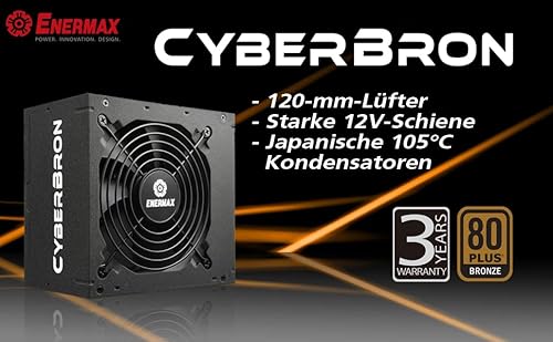 - ENERMAX CYBERBRON Bronze 82+ 600W Netzteil integriert; mit Flachbandkabel für flexibelere Kabelmanagement; Unterstützung der Energiesparfunktionen C6/C7 von Intel-Prozessoren; Intel ATX12V v2.4