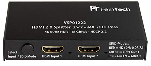 FeinTech VAX04101A HDMI eARC Pass Switch 4x1, für 3 HDMI-Quellen & VSP01222 HDMI 2.0 Splitter 2 Eingänge 2 Ausgänge Scaler ARC Pass für AV-Receiver 4K 60Hz HDR