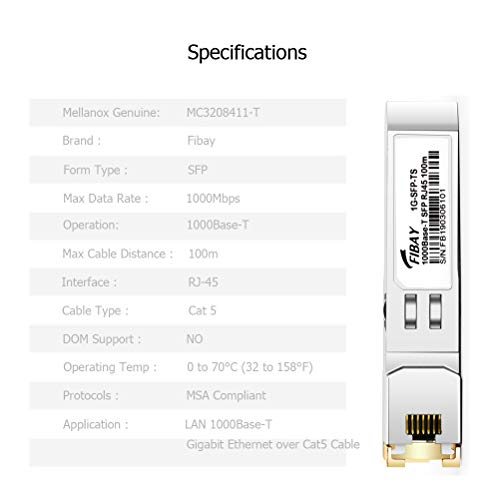 Fibay SFP auf RJ45 Modul für Mellanox MC3208411-T 1000Base-T Mini-GBIC Gigabit SFP Kupfer Optischer Transceiver, RJ-45, 100m