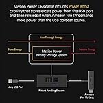 - Das Mission-USB-Ladekabel verfügt über einen speziellen Stromkreis zur Energieverwaltung, der die Spitzenleistung des USB-Anschlusses verbessert, indem überschüssige Energie gespeichert und bei Bedarf bereitgestellt wird.
