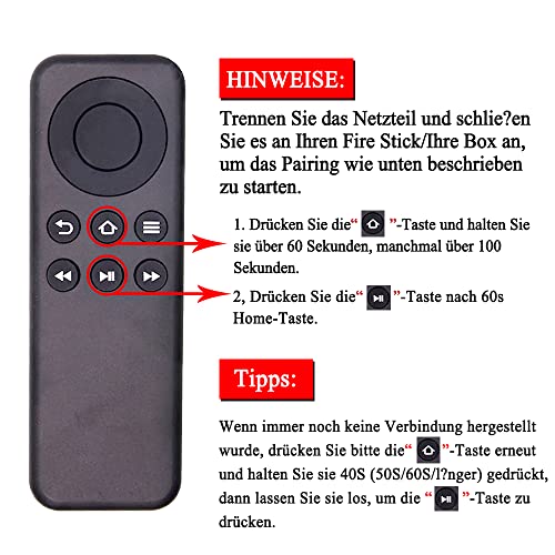 - 【2 EINSTELLMETHODEN】 1: Bitte beachten Sie das Bild zur Konfiguration; 2: Verweisen Sie auf die meisten Käufer, gehen Sie zu Ihren Einstellungen, suchen Sie nach "Controllern und Bluetooth" -Geräten, klicken Sie auf Amazon Fire TV-Fernbedienungen und fügen Sie eine neue Fernbedienung hinzu. Sie werden aufgefordert, die Home-Taste auf der Fernbedienung 10 Sekunden lang gedrückt zu halten. Möglicherweise müssen Sie diesen Schritt einige Male wiederholen, bis die Verbindung erfolgreich ist.