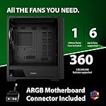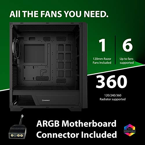 GameMax Venus Mid-Tower ARGB PC-Gaming-Gehäuse, ATX, 1 x 120 mm GameMax Razor ARGB-Lüfter inklusive, Seitenfenster aus gehärtetem Glas, Schwarz