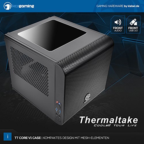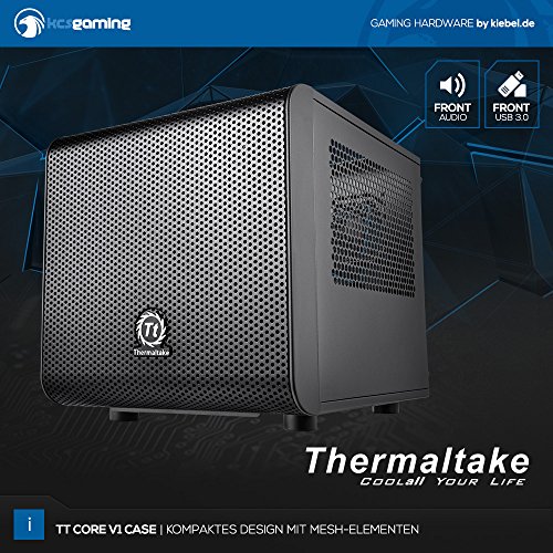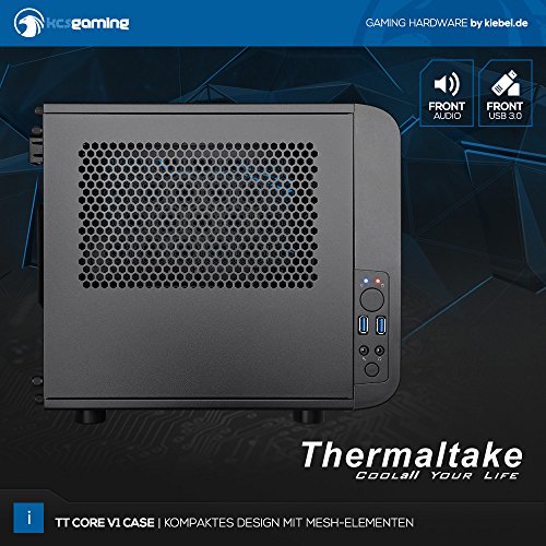 [Gehäuse] - ATX-Mini Thermaltake Core V1, Farbe: schwarz,stylische Mesh-Front, Maße: 276 x 260 x 316 mm (HxBxT)