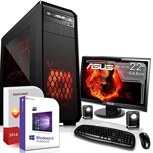 - Zum Lieferumfang gehören außerdem: Ein 22 Zoll ASUS VS228NE LED FULL HD Bildschirm und eine Tastatur / Maus / Boxen - Kombination.