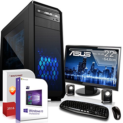 Gaming PC Komplett Set / Multimedia COMPUTER inkl. Win 10 Pro 64-Bit! - Quad-Core Intel Core i5-7500 4x 3,8 GHz - NVIDIA GeForce GTX 1050 Ti mit 4GB GDDR5 - ASUS 22-Zoll TFT Monitor - 8GB DDR4 RAM - 1000GB HDD - 24-fach DVD Brenner - Lautsprecher - Tastatur + Maus - USB 3.0 - HDMI - DVI - Gamer PC mit 3 Jahren Garantie!