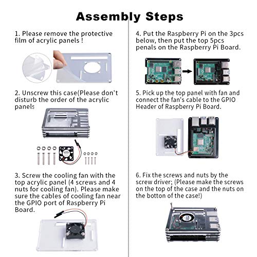 - Die neueste version von 9 schichten acryl fall mit gutem aussehen; Es kann auf alle Anschlüsse der Raspberry Pi-Platine zugegriffen werden, z. B. auf den GPIO-Anschluss, den HDMI-Anschluss, den USB-Anschluss und den SD-Kartensteckplatz.