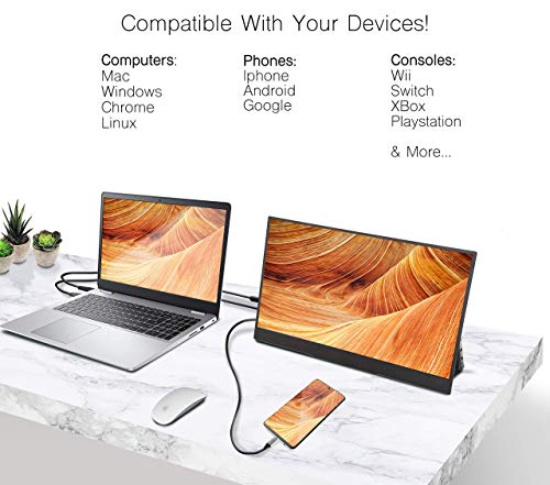 Getue Portable Monitor Freestanding 15.6” FHD 1080P LED Anti-Glare IPS Screen with Kickstand | Compatible with Mac, PC, Chrome | Powered by USB-C or Mini HDMI | Built-in Speakers & HDR Mode