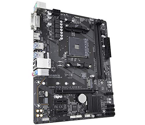 Gigabyte GA-A320M-H Mainboard (Sockel AM4/A320/DDR4/S-ATA 600/Micro ATX), schwarz