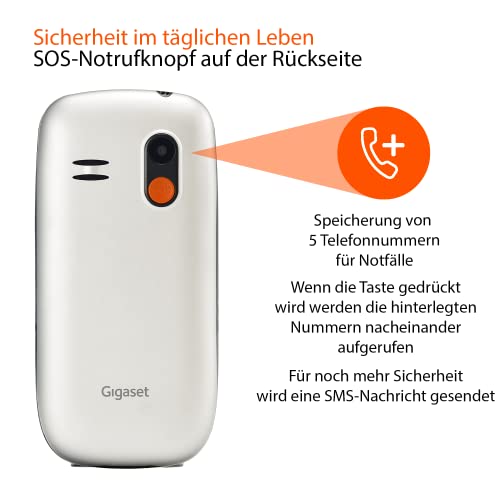 Gigaset GL390 GSM - Senioren Mobiltelefon mit SOS-Notruf-Taste, großem 2,2" Farbdisplay - einfache Bedienung mit großen Einzeltasten, Hörgerätkompatibel, kompaktes Handy ohne Vertrag, Pearl White