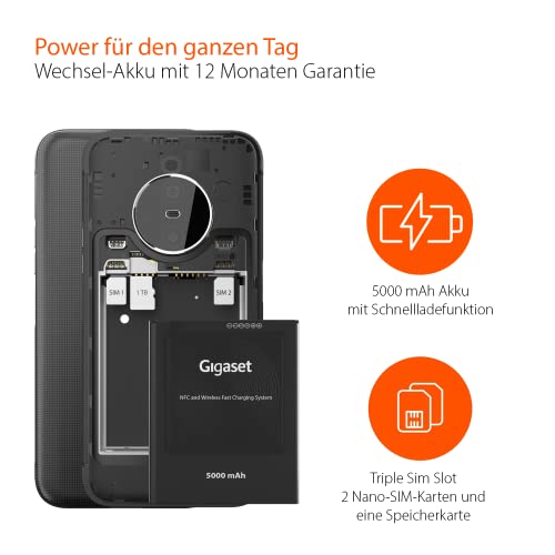 Gigaset GX6 Outdoor Smartphone 5G - Militärstandard - Staub & wasserdicht IP68-6,6" FHD+ Display mit Corning Gorilla Glas 5-128GB+6GB RAM - 50MP Kamera - Schnellladen - Android 12, Titanium Black