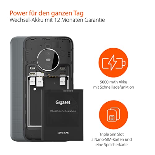 Gigaset GX6 Outdoor Smartphone 5G - Militärstandard - Staub- & wasserdicht IP68-6,6" FHD+ Display mit Corning Gorilla Glas 5-128GB+6GB RAM - 50MP Kamera - Schnellladen - Android 12, Titanium Grey