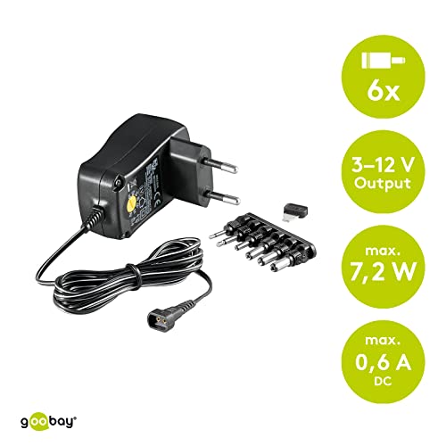 Select Variant: Goobay 67950 3-12V Universal-Netzteil mit maximum 7,2 W/600mAh inkl. 6 Adapterstecker DC schwarz