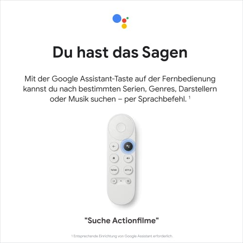- Mit der Google Assistant-Taste auf der Fernbedienung kannst du nach bestimmten Serien, Genres, Darstellern oder Musik suchen – per Sprachbefehl