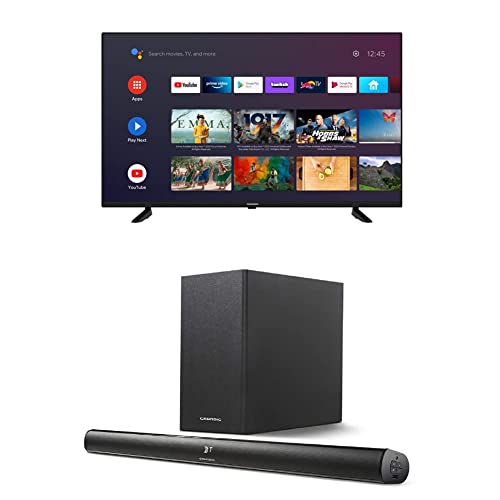 GRUNDIG (55 VOE 72) Fernseher 55 Zoll (139 cm) LED TV, Android TV, 4K UHD, HDR, Dolby Digital, Triple Tuner, Chromecast Built-in, Smart TV, Schwarz + Soundbar mit Subwoofer