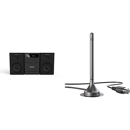 GRUNDIG MS 300 Design Micro Anlage, Kassette, FM-Tuner, MP3 Wiedergabe, USB, SD Karte, Bluetooth, GHF1050 & KabelDirekt - DVB-T2 HD/DVB-T Antenne - (geeignet für hohen digitalen Empfang, 3m Kabel)