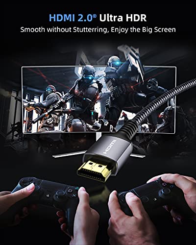 - [Hochwertig und langlebig]: 30AWG Kupferdraht, dreifach verzinnt abgeschirmt, reduziert die Wahrscheinlichkeit von Interferenzen mit drahtlosen Diensten wie Wi-Fi. Doppelt geflochtenes Premium-Nylon und mehr als 10.000 Mal getestet. Vergoldete korrosionsbeständige Anschlüsse für garantiert erstklassiges Bild und Ton.