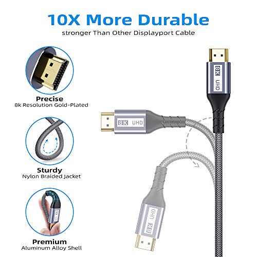 - 【Hohe Geschwindigkeit bis zu 48Gbps 】HDMI 2.1-Kabel unterstützt bis zu 48Gbps und ist abwärtskompatibel mit früheren Versionen: HDMI 2.0b / 2.0a / 2.0 / 1.4 /1.3/1.2/1.1. Unterstützt mehrere Auflösungen, einschließlich 5K und 10K. Keine Verzögerungen bei der Übertragung von Bildern Audio. (HINWEIS: Bitte stellen Sie sicher, dass Ihr Gerät 8K unterstützt).