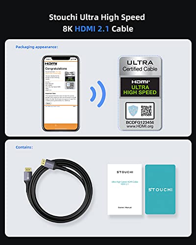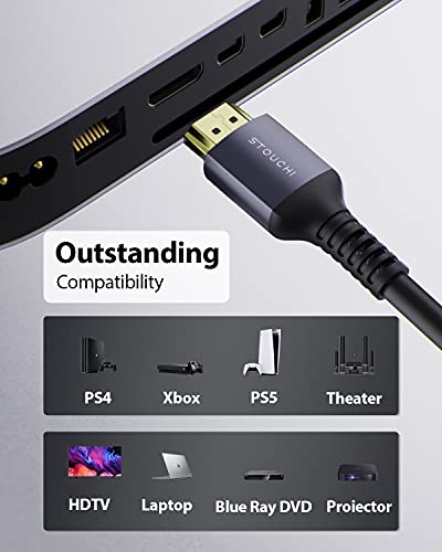 HDMI 2.1-zertifiziertes Kabel 5m,Stouchi 48 Gbit/s Ultrahochgeschwindigkeit 8K60 4K120 144 Hz RTX 3090 eARC HDR10 HDCP 2.2&2.3 Dolby-kompatibel mit PS5/Xbox-Serie X/Samsung/Sony/LG/Roku/TCL-Fernseher