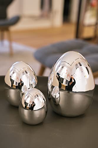 HEITMANN DECO Porzellan Ostereier 3er Set: Moderne Osterdeko zum Hinstellen, Eier in Silber, ca. ca. 20,5 x 16 x 12,5 cm