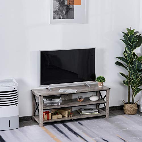 HOMCOM TV-Ständer, für 50 Zoll (127,7 cm), mit Mehreren Regalen, industrielles Design, Kabelbohrung, Traglast 70 kg, 20 x 39 x 50,5 cm, Farbe Eichenholz