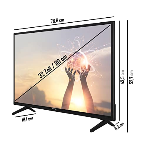 - MEHR ALS NUR EIN FERNSEHER – Der Flachbildschirm verfügt über eine Bildschirmdiagonale von 80 cm (32 Zoll). Über den integrierten Triple-Tuner empfangen Sie Fernsehen über Antenne (DVB-T2), Kabel (DVB-C) oder Satellit (DVB-S2) direkt auf dem Fernsehgerät. Ein zusätzlicher Receiver wird nicht benötigt.