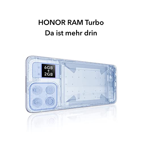 - Intelligente Speichererweiterung: Die HONOR RAM Turbo-Technologie macht's möglich: Statt 6 GB Arbeitsspeicher stehen auf dem HONOR X8 nun zusätzlich 2 GB extra zur Verfügung. Das Ergebnis? Mehr Leistung und reibungsloser Betrieb einer noch größeren Zahl von Anwendungen