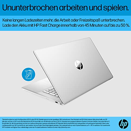 - HP 17 Laptop: das 17 Zoll Notebook mit Hebescharnier-Design für eine bequemere Handposition und starker Hardware hat einen besonders langlebigen Akku zum Arbeiten, Gamen und Streamen ohne Unterbrechungen