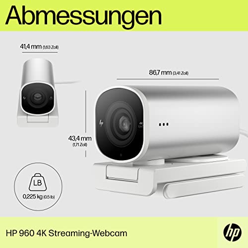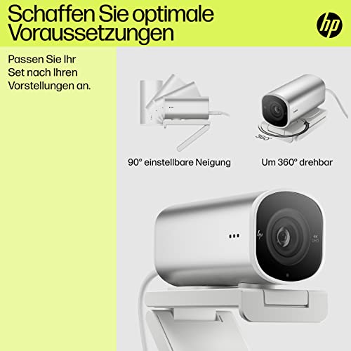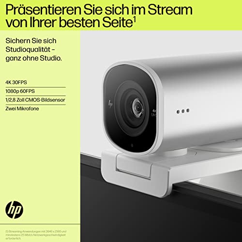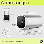 HP 960 4K Streaming Webcam | 4K UHD Auflösung | 60 FPS | 100° Sichtfeld | 360° schwenkbar | KI unterstützt | Autofokus | HDR | 2 Dual-Mikrofone| USB-A | magnetische Abdeckung | silber