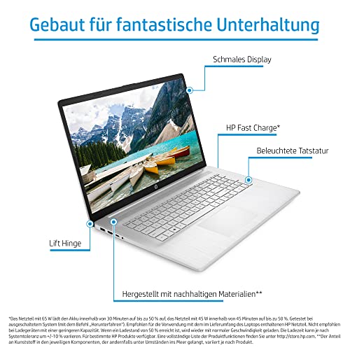 HP Laptop | 17,3" FHD Display | Intel Core i5-1235U | 16 GB DDR4 RAM | 512 GB SSD | NVIDIA GeForce MX550 | Windows 11 Home | QWERTZ Tastatur | silber | mit HP Fast Charge