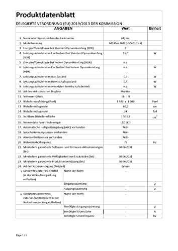 HP M27fwa Monitor - 27 Zoll Bildschirm, Full HD IPS Display, 75Hz, 5ms Reaktionszeit, 2x HDMI 1.4, VGA, Audio In & Out, AMD Freesync, integrierte Lautsprecher) weiss