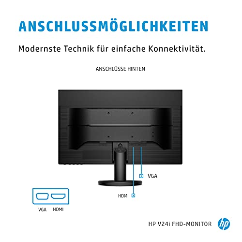 Select Variant: HP V24i Monitor - 24 Zoll Bildschirm, FHD IPS Display, 60Hz, VGA, HDMI, 5ms Reaktionszeit, entspiegelt, neigbar, low blue light modus, schwarz