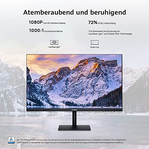 HUAWEI Display 23,8"-75Hz, 60 cm (23,8 Zoll), Full HD FullView Monitor, (HDMI,1920 x 1080,5ms Reaktionszeit), Rahmenloses Design, Eye Comfort, AMD FreeSync, Deutsche Version,Schwarz