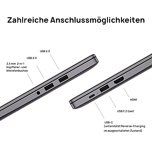HUAWEI MateBook D15 | 15.6" Fullview Display | Intel Core i3-1115G4 | 8GB RAM | 256GB SSD | Windows 11 | QWERTZ | Grau | Schlankes Metallgehäuse | Fingerabdrucksensor |TÜV Rheinland low blue light