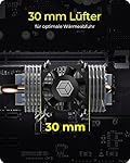 - LEISER LÜFTER: Der leistungsstarke 30 mm PVM Lüfter läuft mit 8500 U/min und erzeugt einen Volumenstrom von ca. 4,9 m³/h. Dabei arbeitet er auch unter hoher Last angenehm leise.