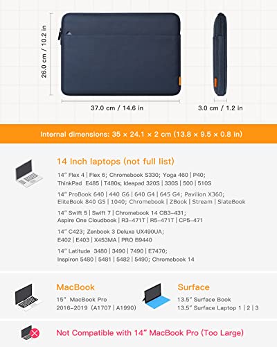 - Dimensions: internal dimensions 35 cm x 24.1 cm x 2 cm. Perfect for 15" MacBook Pro 2019/2018/2017/2016 (A1990/A1707), Microsoft Surface Laptop and most 14" laptops from HP, Dell, ASUS, Acer, Lenovo, Toshiba.