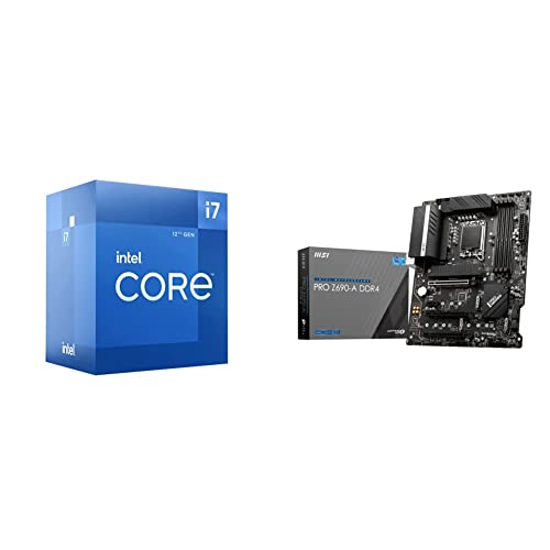 Intel Core i7-12700 12. Generation Desktop Prozessor BX8071512700 Silber & MSI PRO Z690-A DDR4 Mainboard ATX - unterstützt Core 12th Gen Prozessor, LGA 1700-14 Duet Rail 55A VRM