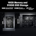 - [Flexible capacity] This Intel mini pc Comes with 2 x 8GB SODIMM, dual-channel DDR4 supports expansion up to 64GB (32+32). 1 x 512GB SSD (2280 M.2 SATA/PCIe), supports expansion up to 2TB. 1 x 2.5'' SATA HDD (7mm), supports expansion up to 2TB.