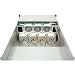 - Serienmäßig 7x 80mm Lüfter; 7x perforierte Low-Profile Slotbleche; Deckel mit Snap-In Verschluss; 3x 12-fach S-ATA/SAS Hot-Swap Backplane mit 3x SFF-8087 Buchse