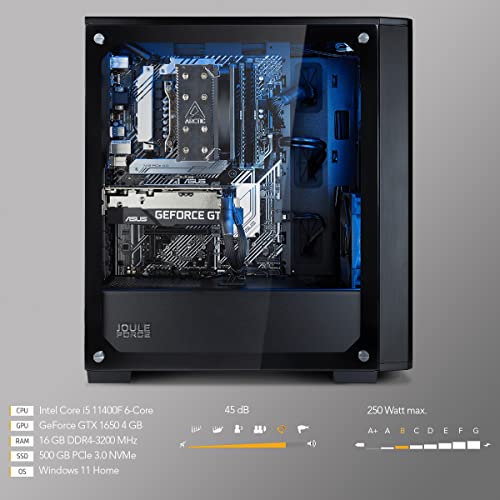 Joule Force Gaming PC Nuke GTX1650 II5, Computer mit 500 GB SSD, GeForce GTX 1650 4GB, Arctic Cooling Freezer 34, schwarz