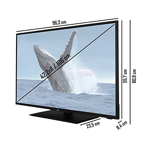 - MEHR ALS NUR EIN FERNSEHER – Der Flachbildschirm verfügt über eine Bildschirmdiagonale von 106 cm (42 Zoll). Über den integrierten Triple-Tuner empfangen Sie Fernsehen über Antenne (DVB-T2), Kabel (DVB-C) oder Satellit (DVB-S2) direkt auf dem Fernsehgerät. Ein zusätzlicher Receiver wird nicht benötigt.