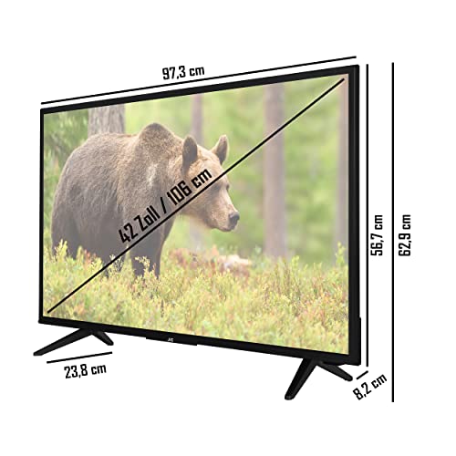 - MEHR ALS NUR EIN FERNSEHER – Der Flachbildschirm verfügt über eine Bildschirmdiagonale von 106 cm (42 Zoll). Über den integrierten Triple-Tuner empfangen Sie Fernsehen über Antenne (DVB-T2), Kabel (DVB-C) oder Satellit (DVB-S2) direkt auf dem Fernsehgerät. Ein zusätzlicher Receiver wird nicht benötigt.