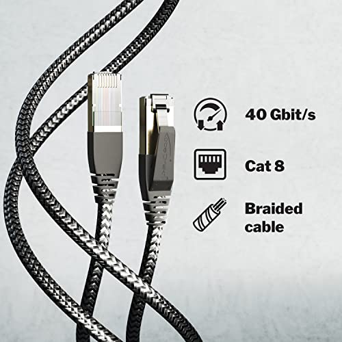 - Übertragen Sie Daten blitzschnell mit unserem Cat 8 Patchkabel (Twisted Pair, RJ-45 Stecker): Mit einer enormen Bandbreite von 2000 MHz und der Unterstützung des 40GBASE-T-Standards ermöglicht das Kabel der Kategorie 8 Bitraten von bis zu 40 Gbit/s